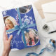 Family Photos Christmas Snowflakes Cobalt Blue Wrapping Paper