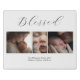Custom Blessed Family Photos Name White Faux Canvas Print. Gorgeous design with modern scripty text in black at top “Blessed", 3 Photo Collage, and family name and year, plus names in black at the bottom. Personalize with your text and photos. All text, fonts, and colors are customizable. We invite you to visit our Zazzle store, Austen & Grace for matching products and more. Please contact us if you require any assistance.