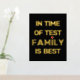 "IN TIME OF TEST FAMILY IS BEST" Burmese proverb and red heart black print.