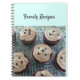 A great notebook for all the favorite family recipes. A background with soft aqua featuring cupcakes with chocolate chips. The words 'family recipes' can be changed as desired.