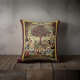 The Family Tree Legacy Keepsakes Throw Pillow showcases a vintage family tree design with an apple tree on a unique burgundy background. The front cover features a template for adding names and photos, making it a perfect personalized gift for cherished family memories.
