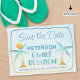 Remind family members to Save The Date for your upcoming beach or tropical themed Family Reunion with this fun invitation featuring a modern watercolor typography design with palm trees in coastal colors. ASSISTANCE: For help with design modification or personalization, transferring the design to another product or you would like coordinating items, contact the designer BEFORE ORDERING via the Zazzle Chat MESSAGE tab below or email makeitaboutyoustore@gmail.com.