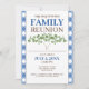 Celebrate your next family reunion in style with this rustic invitation, featuring a classic blue gingham background and symbolic tree design—perfect for honoring family roots. The layout includes customizable text in blue and brown sans serif typography, ideal for adding your own event details.