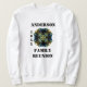 Are you looking for a unique family reunion sweatshirt that is out of this world? Check out this artistic reunion sweatshirt featuring a distinctive gold, blue, and black celestial abstract design in the center. Your family's name and year accompany this design. All text can easily be personalized to create a keepsake shirt as unique as your family.