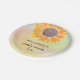 This family reunion paper plate is decorated with a yellow sunflower on a watercolor background.