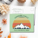 Cool custom family reunion postcard invitation for an autumn get-together with cousins, aunts, uncles, and grandparents. Invite the whole crew with your last name and year in green surrounding the beautiful fall sunset image over the mountains and trees. Great personalized group camping trip design.