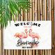 Offer a warm welcome at your next family reunion with a horizontal format banner featuring flamingos along the bottom on a white background. Personalize all the text, remove text, or edit using the design tool to select a font style, size, and color you prefer. At checkout, you can select items to help hang or mount your banner so it’s ready for display after arriving in the mail.
