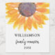 This family reunion wine bottle label is decorated with a watercolor yellow sunflower.