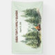 Banner featuring pine wood forest and campfire. Everything is placed on a the white and light green background. Perfect for your next family reunion, birthday or any nature-themed event. Easily personalize all the text. - Kate Eden Art.