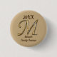 This button offers a unique way to personalize your next family reunion. The round button features a large gold and silver letter M monogram. This elegant family initial M is centered and is surrounded by a the year and your family's name. Personalize all text quickly and easily.