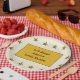 Create a unique paper plate for your next family reunion. These party plates feature a frame of gold stars. Your event information appears inside a gold rectangle in the center. All text can quickly and easily be customized.