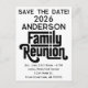 This modern family reunion save the date features a clean black and white aesthetic with bold typography and a minimalist layout. The design focuses on high-contrast clarity, ensuring all event details are easily readable for relatives of all ages.