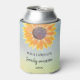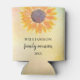This fun Family Reunion Can Cooler is decorated with a yellow sunflower and a watercolor background.