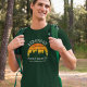 Rustic Pine Trees Summer Retro Sunset Family Reunion Forest Green T-Shirt. Shirt sizes available for everyone in the family. Many colors to choose from. Great for family reunion vacations from camping in the mountains to a vacation at the family cabin in the woods by the lake. Personalize with your family name, location, year or date and more.