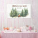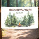 Banner featuring pine wood forest and campfire. Everything is placed on a the white background. Perfect for your next family reunion, birthday or any nature-themed event. Easily personalize all the text. - Kate Eden Art.