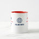 Personalize this family reunion mug with your family name, location, year, and heritage(s). Great as a keepsake for families who wish to make memories together. The modern typography together with an elegant script text and the design elements (a globe and stars) are in red and navy blue.