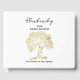 Document the attendees at your next family reunion when they leave messages for future family members to read. This guest book cover design features a minimal tree and old gold tree art. Fill in the personal information template fields, remove any text or edit using the design tool to select a font color, size, and style your prefer. A simple long lasting family reunion memento.