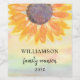 This family reunion wine bottle label is decorated with a yellow sunflower on a watercolor background.
