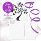 This family reunion white "Save The Date" typography is set in violet circle on the left side of the post card. The right side of the front design features an art nouveau tree with a variety of inset colors on the flowers. Fill in the personal information template fields for the front and back, remove text and/or click customize to select a typeface color, size, and style your prefer.