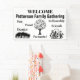 Welcome to the themed family reunion. This sign is black and white. What a great group picture if everyone wore black and white. The sign is customizable. A tree with food items as the branches/leaves is centered. A group of people is positioned on one lower side while on the other is a cook-out complete with children carrying a ball or a flag. The gathering will include Fun, Food, Family, Fellowship, Friends and will be totally Fantastic! So these words are scattered on the sign. Any of these words can be deleted or replaced to one of your choice. Again this is a black/white themed gathering. Using white/black paper plates and cups and white table liners, etc.
