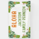 Welcome family members to your tropical or Hawaiian Luau themed Family Reunion with this banner sign featuring watercolor tropical palm leaves and flowers and your custom text in your choice of font styles and colors. The sample shows ALOHA and NAME FAMILY REUNION. BANNER OPTIONS: The sample is shown in the 3x5' size; other sizes are available on the ordering page as well as the option of transferring the design to a foam board, poster, tapestry or other product or have the designer convert it to a DIGITAL DOWNLOAD file BEFORE ordering to print locally. ASSISTANCE: For help with design modification or personalization, resizing, color change or if you would like coordinating items, contact the designer BEFORE ORDERING via the Zazzle Chat MESSAGE tab below or email makeitaboutyoustore@gmail.com.
