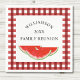 Add these cheerful paper napkins to your table decor. They are decorated with watercolor watermelons and a red check background.