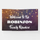 String lights family reunion banner with elegant fonts and festive lights hung on a night background. Edit all text for your reunion or any other event.