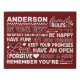 Create a warm and welcoming atmosphere in your home with this personalized maroon canvas print. Featuring a modern design with heartwarming family rules and space to add your family name in white text, this wall art is a beautiful way to celebrate your unique bond. A perfect addition to your living room, kitchen, or any space where your family gathers.