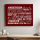 Family Rules Personalized Name Positive Maroon Faux Canvas Print
