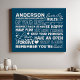 Create a warm and welcoming atmosphere in your home with this personalized navy blue canvas print. Featuring a modern design with heartwarming family rules and space to add your family name in white text, this wall art is a beautiful way to celebrate your unique bond. A perfect addition to your living room, kitchen, or any space where your family gathers.