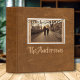 Tell your life's story in photos with this keepsake binder. Family photo customized on front with dangling group of string lights over top and old paper in background. Customize with a family name underneath. Faux tan leather background wraps around front to back.