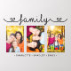 Family Script 3 Photo Template Custom Names features three of your favorite photos with the text "family" in elegant calligraphy script and your names below. Personalize by editing the text in the text box provided. Designed by ©Evco Studio www.zazzle.com/store/evcostudio