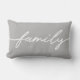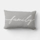 Coordinate with farmhouse style decor and celebrate family with this simple gray pillow featuring "family" script typography in white.