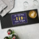 Decorate your home bar with this personalized bar mat in blue, gold and white. The design includes the text, "The [Your Name]'s Family Taproom / Ale, Friends, Good Times." All text can be customized however you like. The design also includes silhouettes of a beer bottle, mug, glass, and barley. Use the easy templates to personalize. These barmats make a great addition to any home bar and are a great gift for any beer enthusiast.
