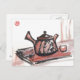 A red teapot with large side handle awaits... Brush painting design by Ren Adams.