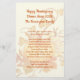 Thanksgiving dinner family menu for fun at home. With the family cooking, baking and gathering together, why not create a fun keepsake menu for the occasion? This ecru paper has orange text templates in two places with a background image of a pumpkin and fall leaves. Add a title, in bold orange font, with the family name and date at the top. The food list is added in paragraph form with enough room for listing the chef / baker next to each food item. Include more spaces, or remove them as needed to fit your list. Reverse is solid orange and paper upgrades are optional.
