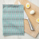 A kitchen or bath, or bar towel with teal patterned design which can be switched to any color to coordinate with your home decor. The family time text can be personalized to any message or text is removable. Personalize for a custom family gift idea.