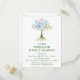 This Family Reunion invitation postcard features a watercolor family tree in pastel shades and green typography.