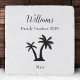 Remember your family's tropical vacation with this custom kitchen trivet. Trivet is modern and has a black silhouette of a palm tree and black text with your family last name, travel year, and trip destination. This trivet is a lovely personalized keepsake that will be treasured for years to come.