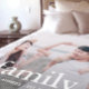 Simple and minimal family typography with last name and est year in white text, one full photo blanket.