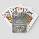 These playing cards are a unique way to add some personalization to your next family vacation, picnic, or reunion. These playing cards feature a beautiful beach abstract pattern found on a piece of driftwood washed up on a California beach. The marbled brown, black, and gray colors create a unique background for a gray banner which supports your family's name, the year, and the event. Personalize all text quickly and easily.