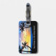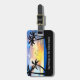 Family vacation custom luggage tags designed with a tropical beach sunset silhouette and name space for your family name helping distinguish your luggage from the rest at the airport or on the go.