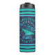 This personalized family vacation thermal tumbler shows a cruise ship, sun rays, a palm tree, and more nautical details. The color palette is sea green and blue on a navy blue background with striped edges. All text can be easily changed through the templates, including your family name and the words "family vacation." You can also add the year or delete the sample text to leave that part blank. TIP: If you want to alter the fonts or need to adjust text size to fit, just customize / personalize further.