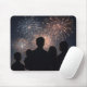 A family silhouette stands against a vibrant backdrop of fireworks, creating a magical and festive atmosphere in the night sky