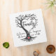 The image shows the cover of a family photo album. The album has a black spine with the words "Family Album" written vertically in white text. The front cover features a stylized tree with branches forming a heart shape. Inside the heart, the word "Family" is written in a cursive font. Above the word "Family," there are two birds sitting on a branch with three small red hearts above them. Below the heart, the phrase "Where life begins & love never ends" is written in a mix of cursive and print fonts. At the base of the tree, there is a small red heart. The overall design is elegant and emphasizes the themes of family, love, and togetherness.