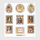 A selection of the most famous artworks and their details painted and created during the Renaissance presented in a 9 sticker set: Mona Lisa by Leonardo da Vinci, The Creation of Adam by Michelangelo, The Birth of Venus by Botticelli, Donatello's David, The Venus of Urbino by Titian, Lady with an Ermine by Leonardo da Vinci, Albrecht Dürer Self-portrait. Framed in ornate ornamental style, very classy, stylish and elegant, they can be used for various DIY crafts, journals, scrapbooking, gift decoration, favor bag seals, mailing envelope seals or a decoration for your mug, laptop, phone case, notebook, school or office stationary.