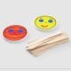 Hot or Cold - One side shows red face with frown and perspiration drops. Other side shows yellow face with happy smile.