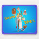 Mousepad showing a fun cartoon of a father holding a variety of items from around the house.