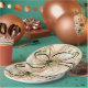 In soft shades of pink, brown, mossy green and black, this original, highly stylized flower design by Leslie Sigal Javorek evokes feelings of graceful movement, energy, and magic. These paper plates are perfect for dinners or parties.
