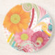 Fanciful Flowers on White Drink Coaster